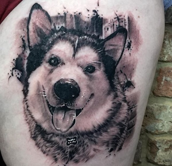 13款可爱的宠物狗纹身动物哈士奇肖像纹身图案