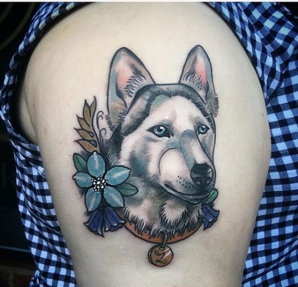 13款可爱的宠物狗纹身动物哈士奇肖像纹身图案