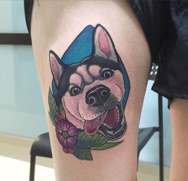 13款可爱的宠物狗纹身动物哈士奇肖像纹身图案