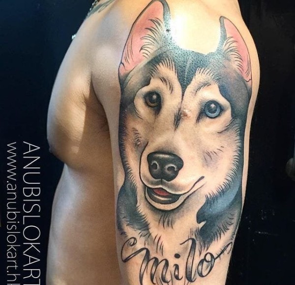 13款可爱的宠物狗纹身动物哈士奇肖像纹身图案