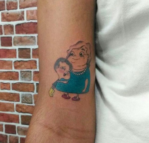 复古卡通红唇美女手臂纹身_卡通纹身图案大全_纹身图吧