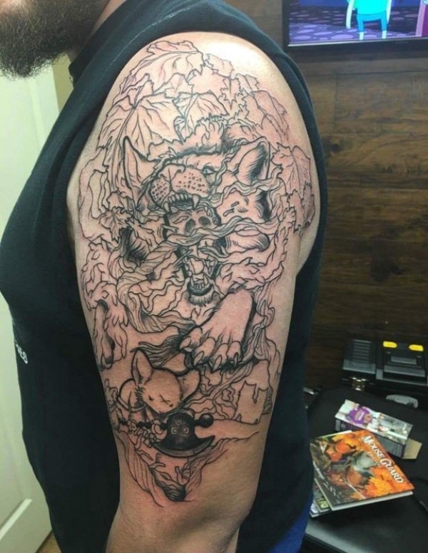 黑色动物图案纹身线条手臂老鼠纹身和熊纹身图片