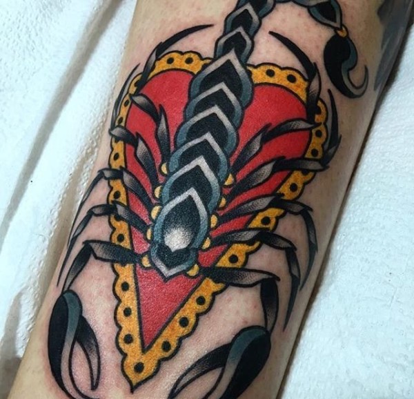 手臂上彩色传统纹身动物和骷髅头纹身图案