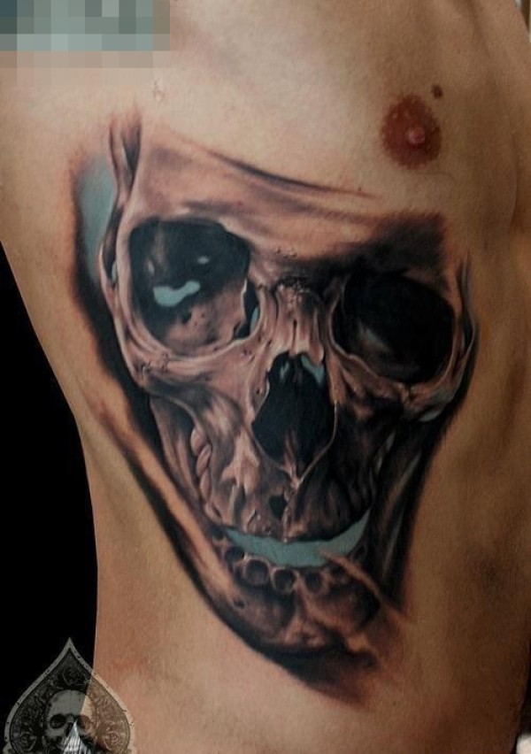 侧腰女骷髅刺青图案图片_骷髅纹身图案大全_纹身图吧