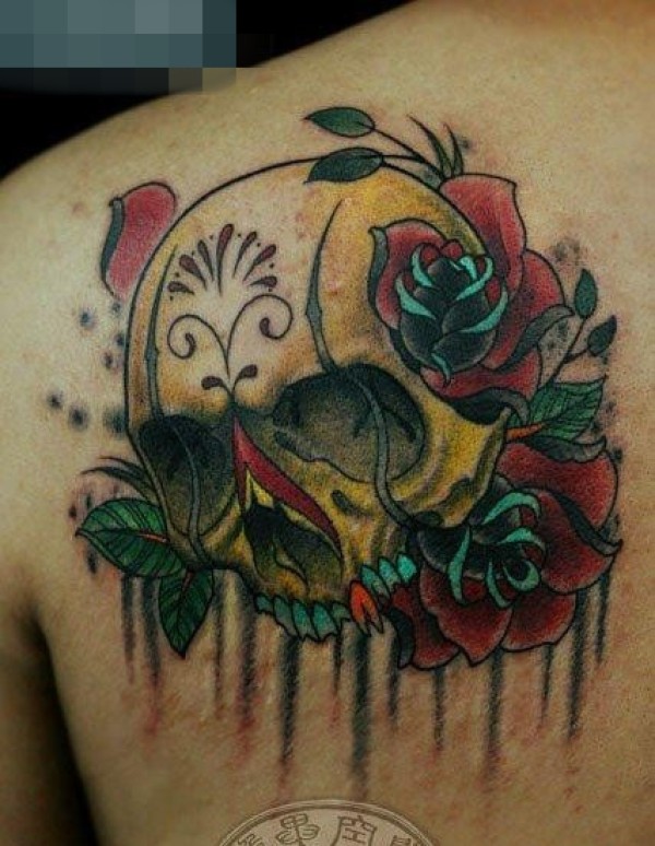 男生背部好看的骷髅纹身图案