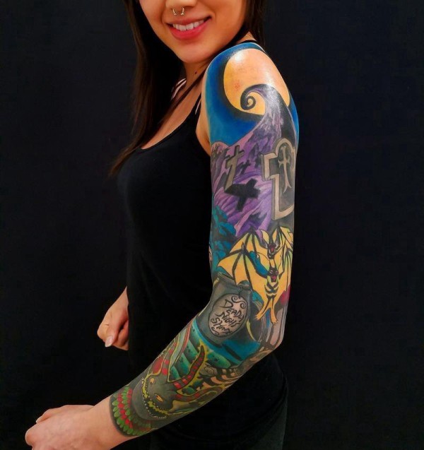 时尚花臂纹身动物们惊魂的圣诞夜纹身图片