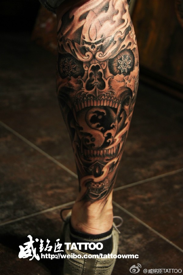手臂黑灰象神_一组12张手臂上的黑灰象神纹身图案作品欣赏