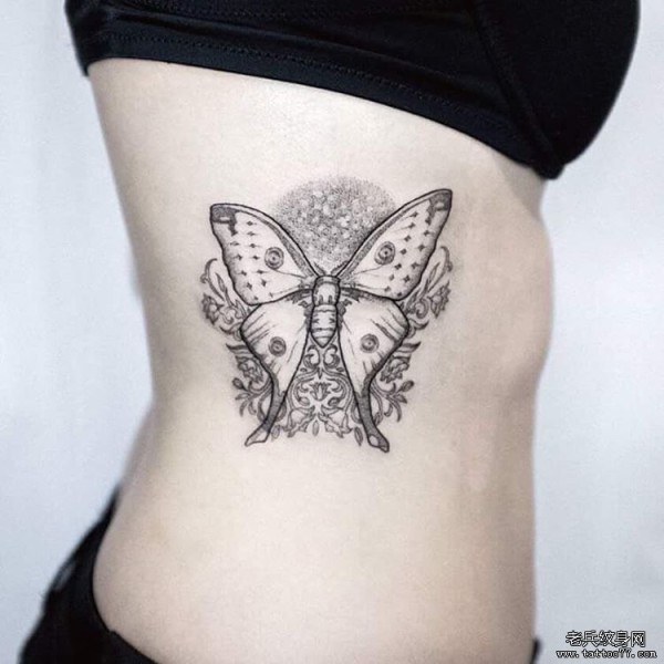 侧腰小清新点刺蝴蝶纹身图案