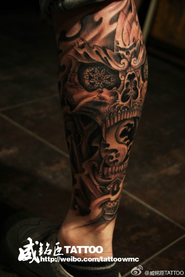 手臂黑灰象神_一组12张手臂上的黑灰象神纹身图案作品欣赏