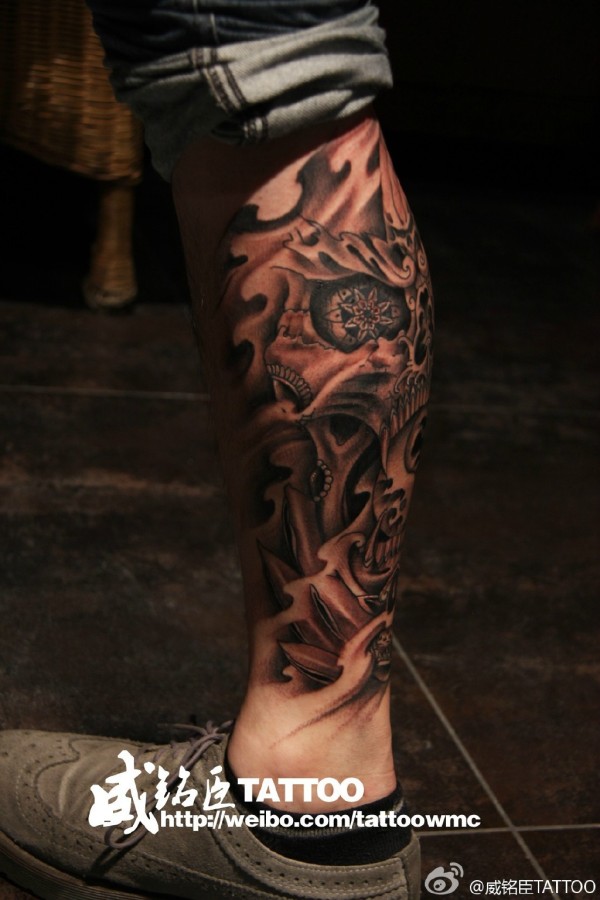 手臂黑灰象神_一组12张手臂上的黑灰象神纹身图案作品欣赏