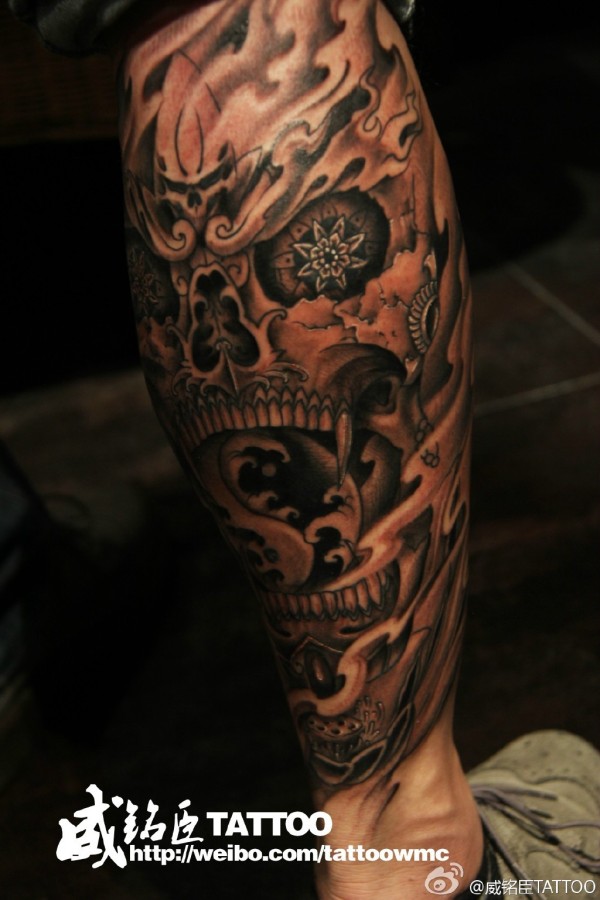 手臂黑灰象神_一组12张手臂上的黑灰象神纹身图案作品欣赏