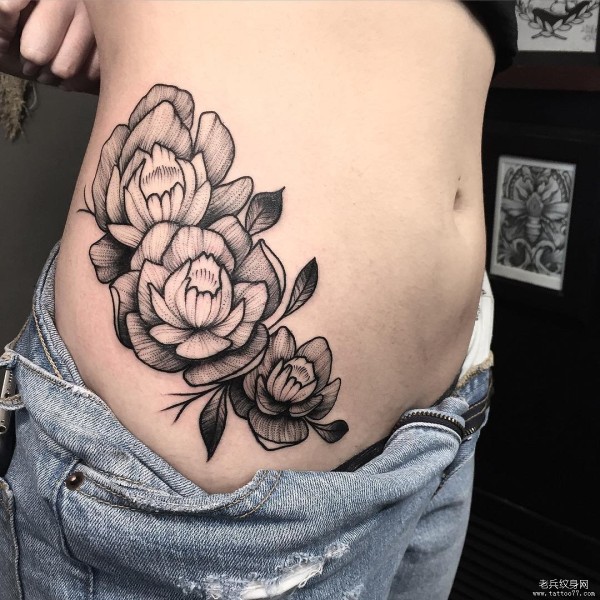 女性腰部莲花花纹刺青_腰部纹身图案大全_纹身图吧