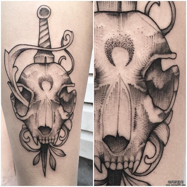 花腿纹身--一组大黑腿纹身图案作品欣赏