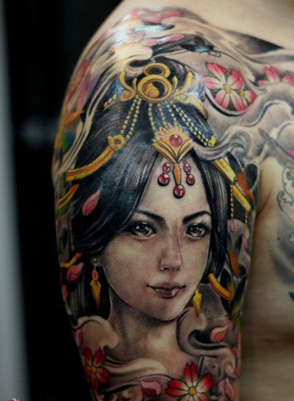 女性人物纹身图案 男生大臂纹身女性人物纹身图案