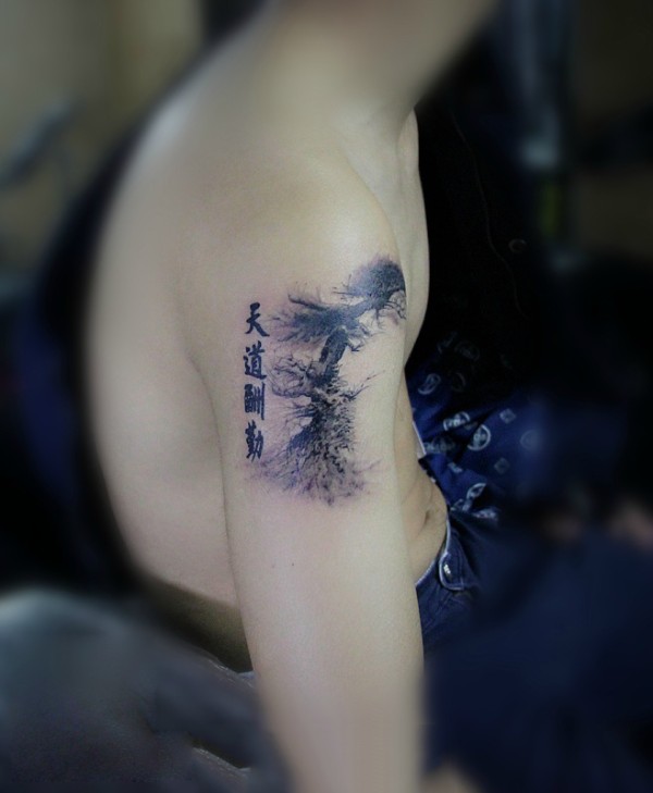手臂中文汉字松树纹身图案