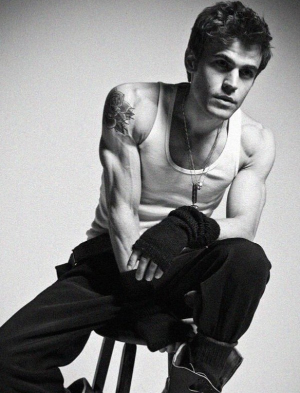 保罗韦斯利肩膀处漂亮的玫瑰刺青图案
