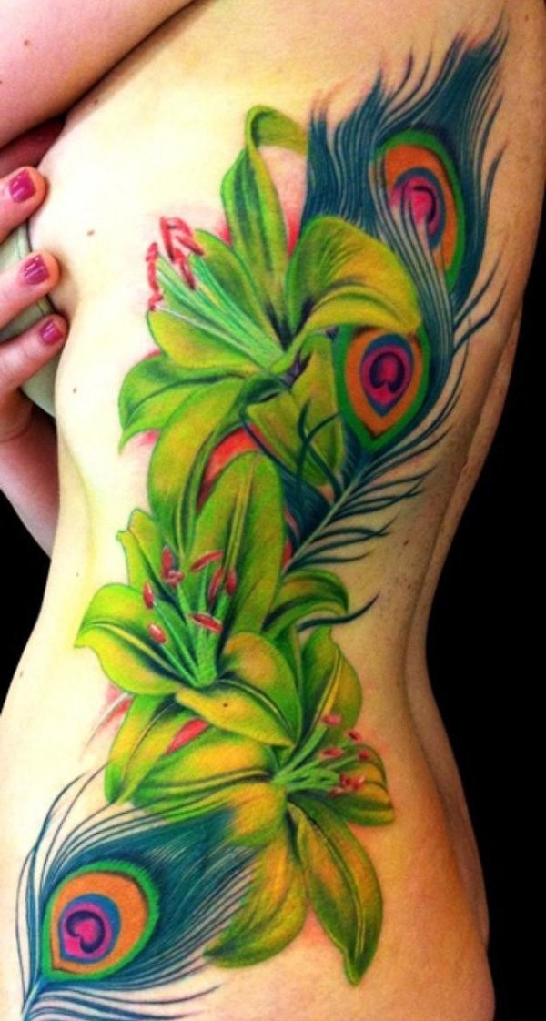 10款女性侧肋上性感的百合花纹身图案