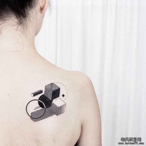 女生背部立体几何点刺小清新纹身图案