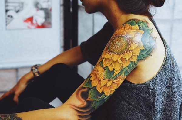 草图感向日葵纹身图案_植物纹身图案大全_纹身图吧