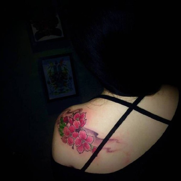 后肩唯美花藤英文图案图片_植物纹身图案大全_纹身图吧