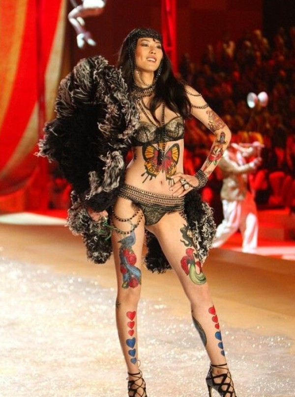超模刘雯彩绘个性腿部腹部手臂纹身图案
