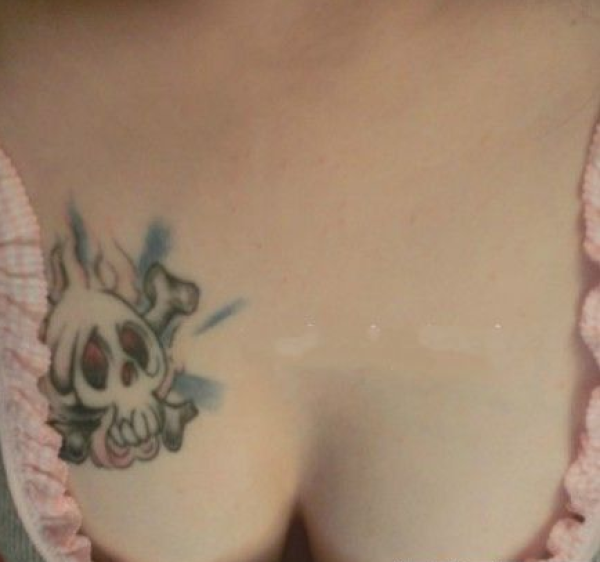 迷人胸部个性骷髅彩绘刺青图案