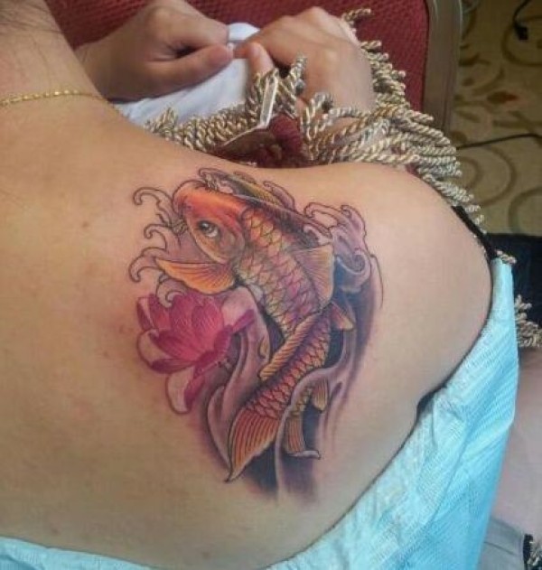 非常漂亮唯美的肩部鲤鱼刺青图案