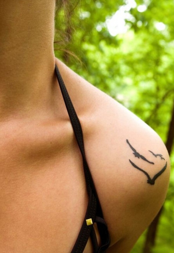 女性肩部漂亮的三只小鸟纹身图案