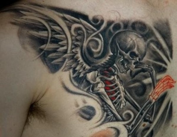 胸部经典帅气的骷髅纹身图案