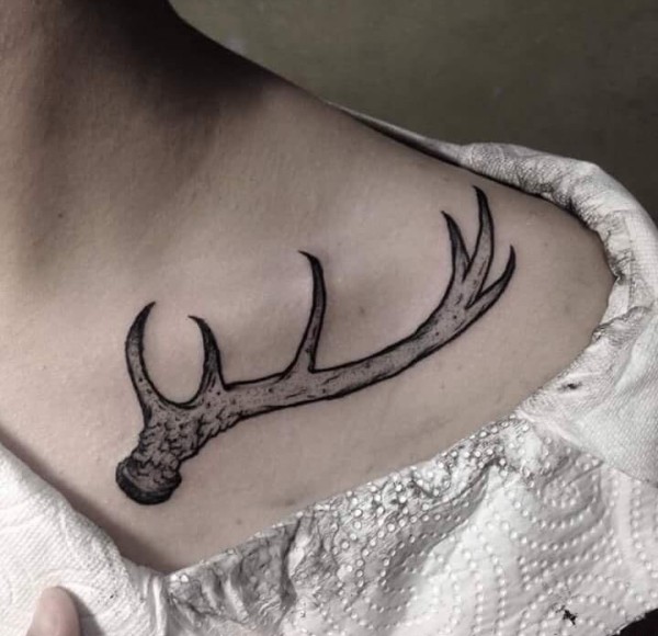 美女锁骨上性感的黑色的麋鹿角纹身图片