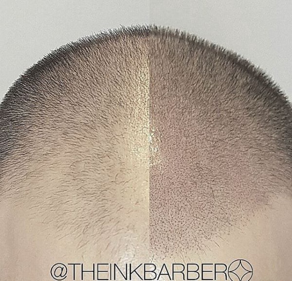 男性头发稀疏smp头皮纹身黑色点刺技巧纹身图案