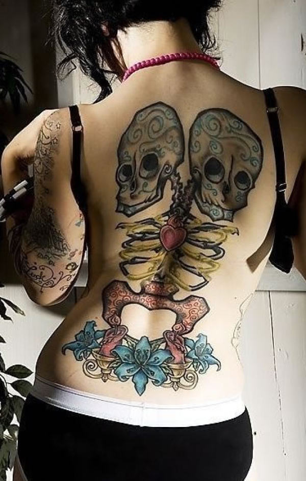 侧腰女骷髅刺青图案图片_骷髅纹身图案大全_纹身图吧