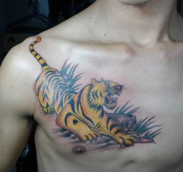 霸气半胛老虎纹身_动物纹身图案大全_纹身图吧