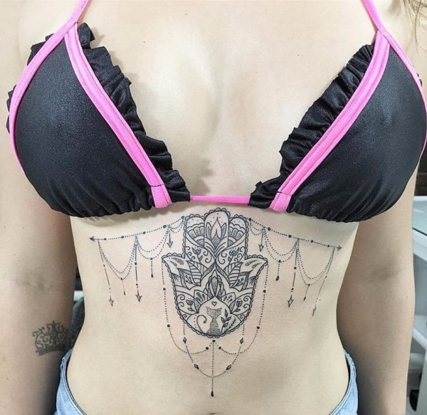 16漂亮的黑色点刺纹身线条几何纹身图案