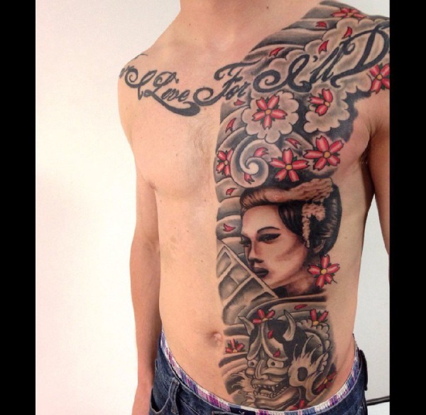 彩色的日本艺伎纹身樱花纹身般若面具纹身图片