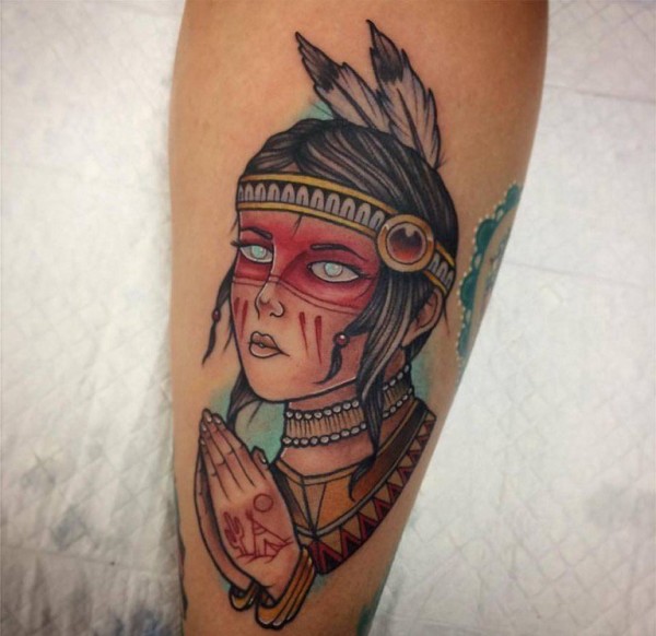 手前臂上精美的印第安风格的女孩纹身图片