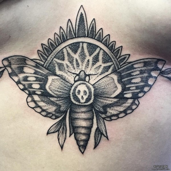 胸部性感点刺飞蛾骷髅纹身图案