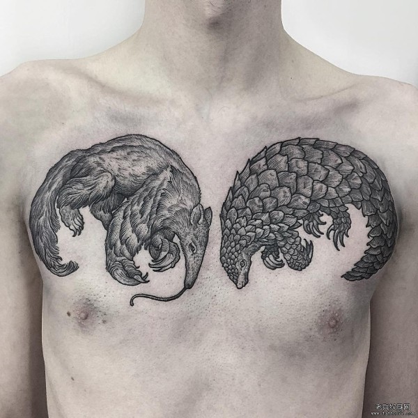 男士胸部写实穿山甲纹身图案