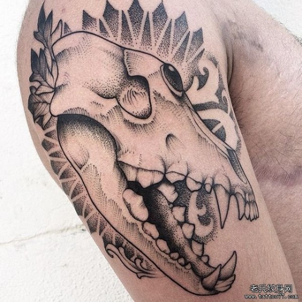 大臂头骨宝石骷髅点刺纹身图案