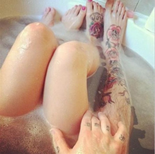 情侣脚部彩色玫瑰藤蔓爱情纹身