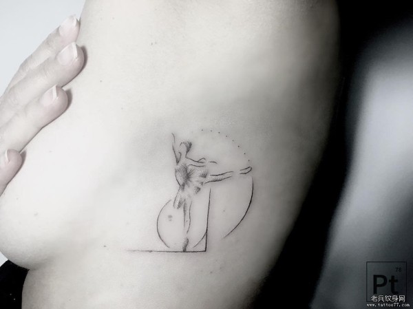 女生后腰纹身黑白灰风格抽象线条纹身图案