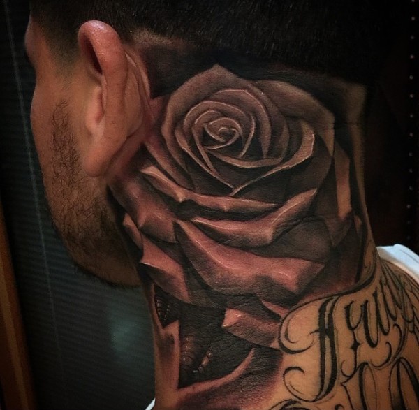 30款男性超帅气的黑灰色脖子纹身图案大全