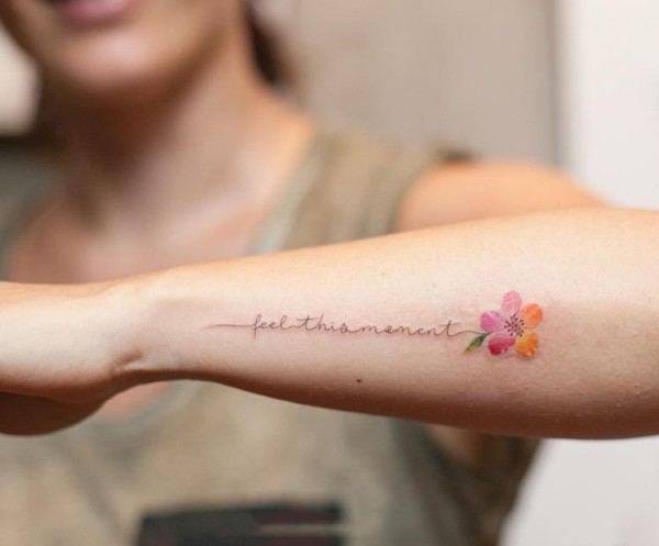 手臂小花与英文小清新纹身图案