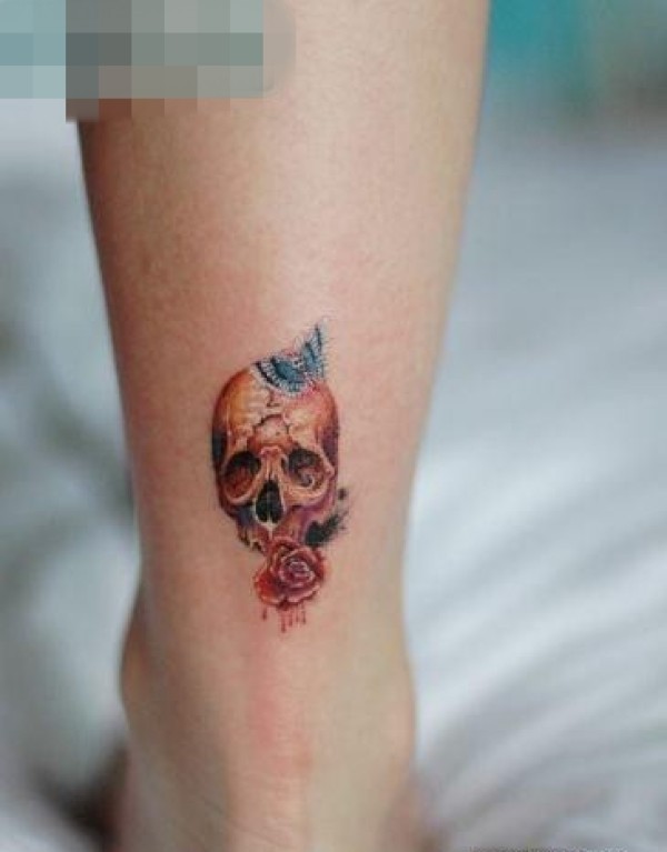 女孩子腿部小巧精美的骷髅纹身图案