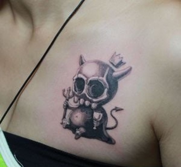 女生胸部一张骷髅恶魔纹身图案