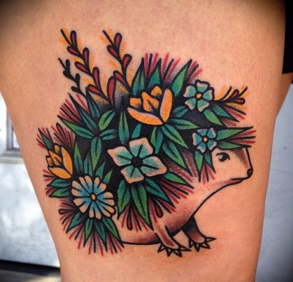 14款风格各异的彩色纹身动物小刺猬纹身图案