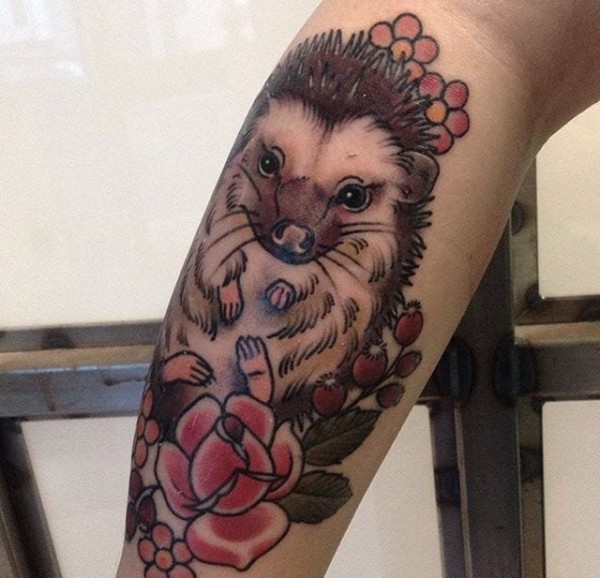 14款风格各异的彩色纹身动物小刺猬纹身图案