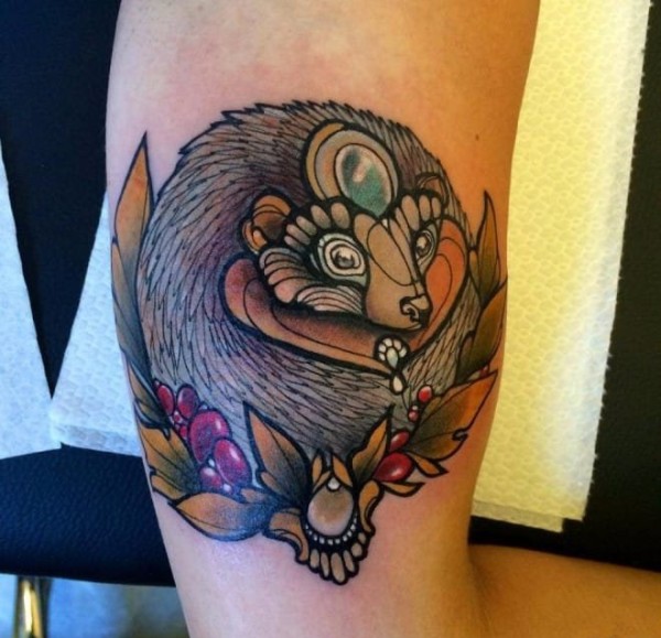 14款风格各异的彩色纹身动物小刺猬纹身图案