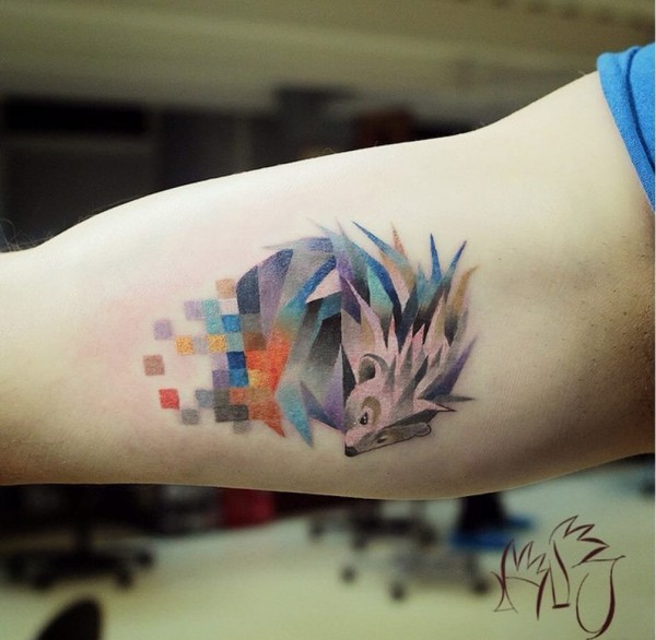 14款风格各异的彩色纹身动物小刺猬纹身图案
