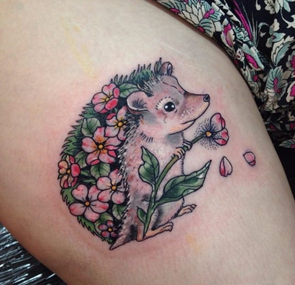 14款风格各异的彩色纹身动物小刺猬纹身图案
